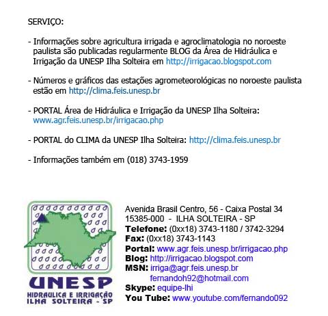 de Hidráulica e Irrigação da UNESP Ilha Solteira a partir de http://www.agr.feis.unesp.br/irrigacao.