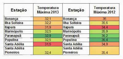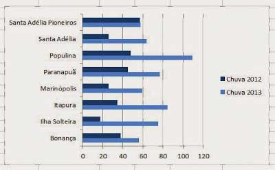 diferença de um ano para outro, a estação de Paranapuã teve em 2013 a média