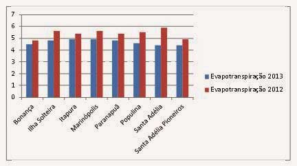 Pode-se analisar que em 2012 a média da evapotranspiração foi maior em todas